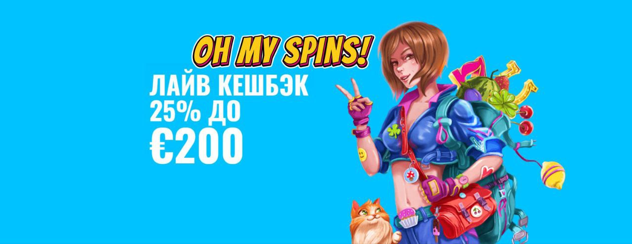 Кэшбэк 25% в играх Live Casino от казино OhMySpins