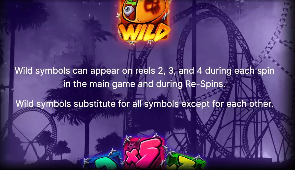 Игровое поле находится в ржавом фургоне на фоне парка развлечений. Зеленый зомби торгует тако. В игровой сетке над средними барабанами дополнительный ряд. Звучит динамичная музыка.